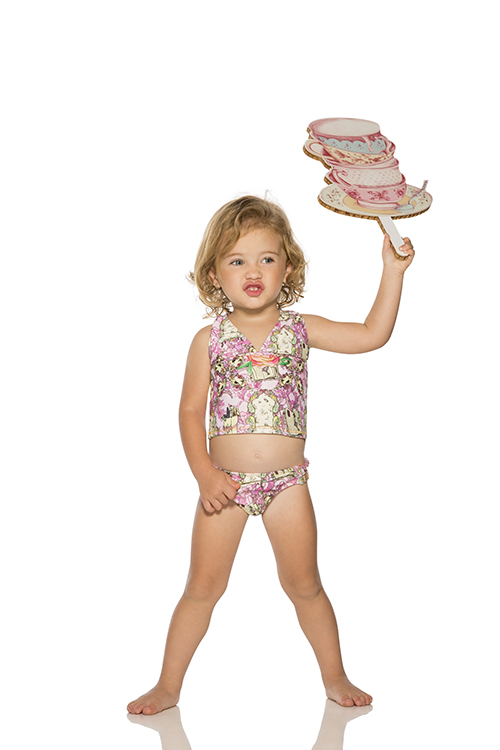 Tankini printed with mirror, flowers and embroidered in beads. Feel like a little princess.